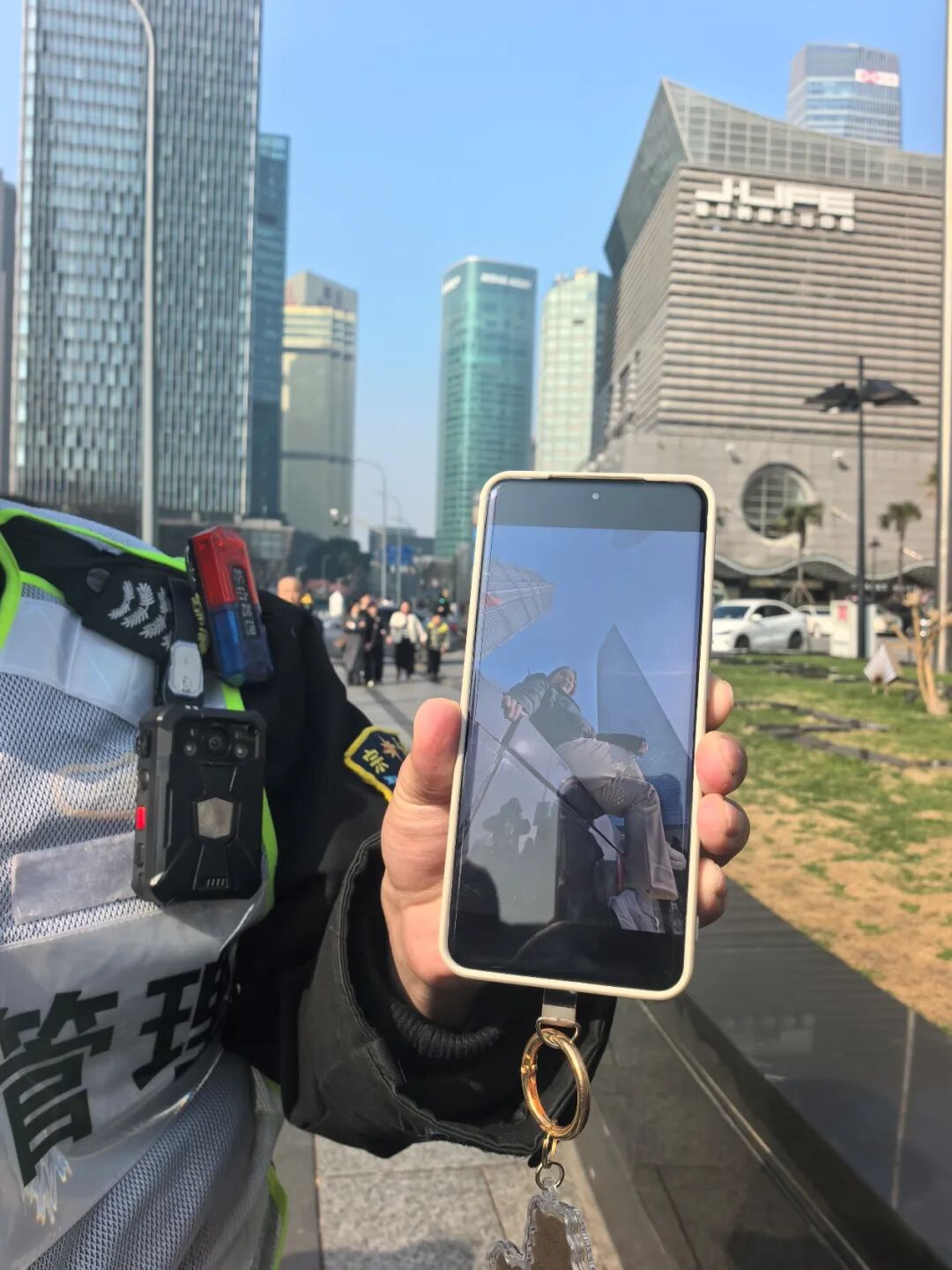 记者采访获悉,他就是上海陆家嘴街道综合管理辅助队金茂专班带班班长付绍祥。近期,不时有游客在社交媒体上分享他教拍照的视频,并亲切地称他为“付小哥”。