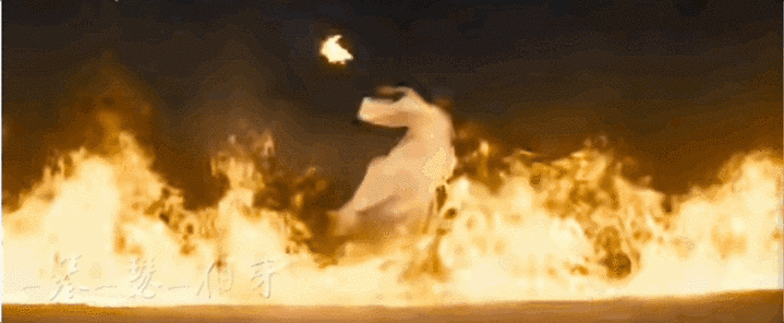 吴京和于适手持燃烧的兵器对决,刀刃划出的火弧轨迹,像黑夜里舞动的动态水墨。